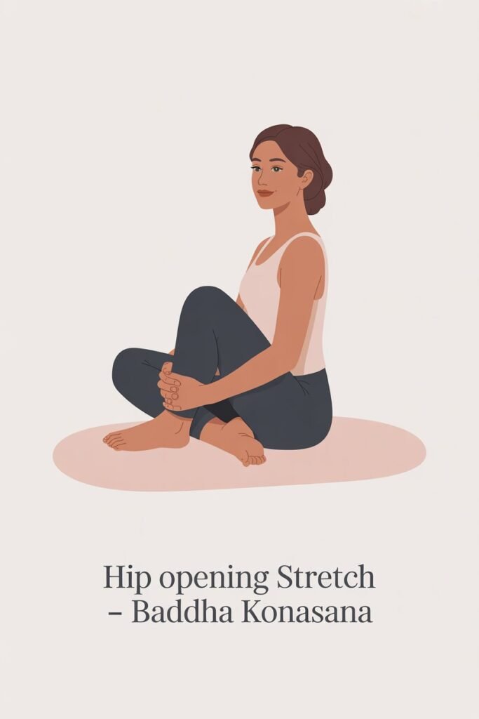 This stretch is your go-to pose for loosening tight hip joints. It’s simple, relaxing, and perfect to start or end your stretching routine.