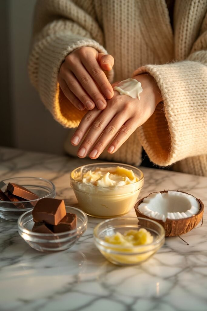 A rich, plant-based moisturizer with shea butter, squalane, or ceramides can restore softness and seal in hydration. It’s your best defense against cold air and indoor heating.