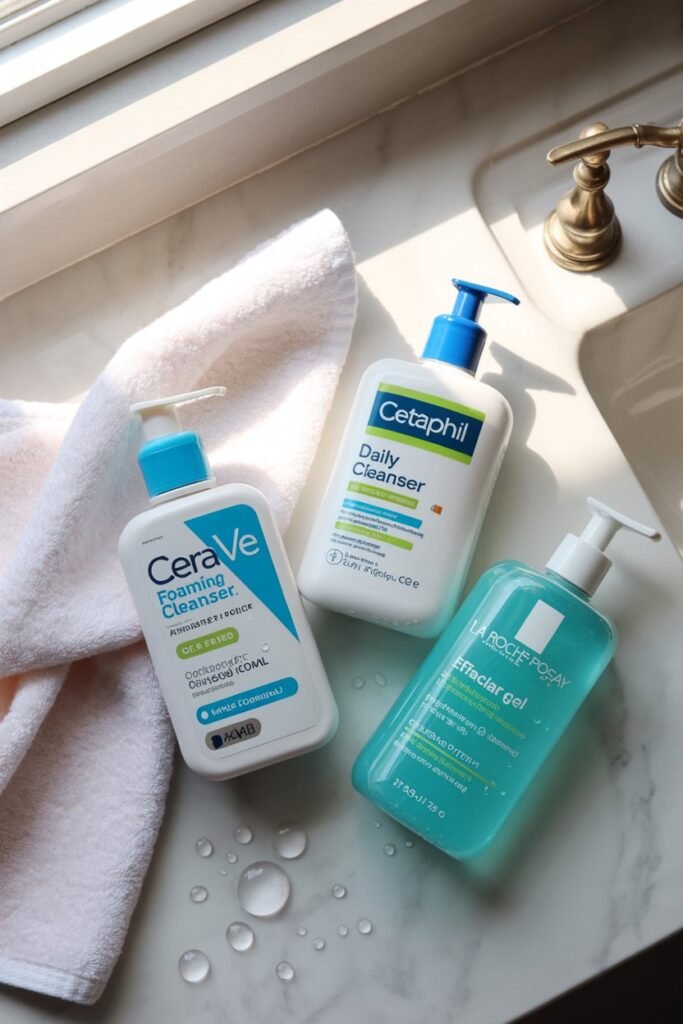 CeraVe Foaming Facial Cleanser, Cetaphil Daily Cleanser, La Roche-Posay Effaclar Cleanser