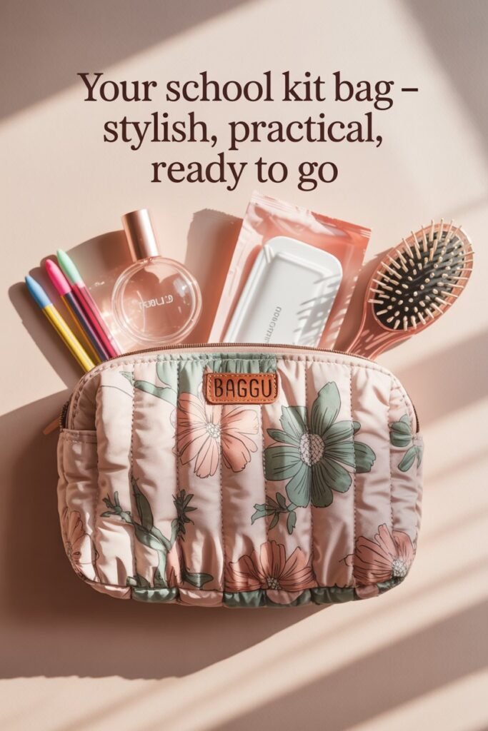 - Baggu Puffy Cosmetic Bag (Floral Print) – lightweight, stylish, and surprisingly spacious.